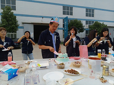 5點(diǎn)整,燭光晚餐環(huán)節(jié),全體成員來到戶外進(jìn)行自助燒烤,對(duì)過生日的員工慶祝生日,大家齊動(dòng)手、共聚餐。