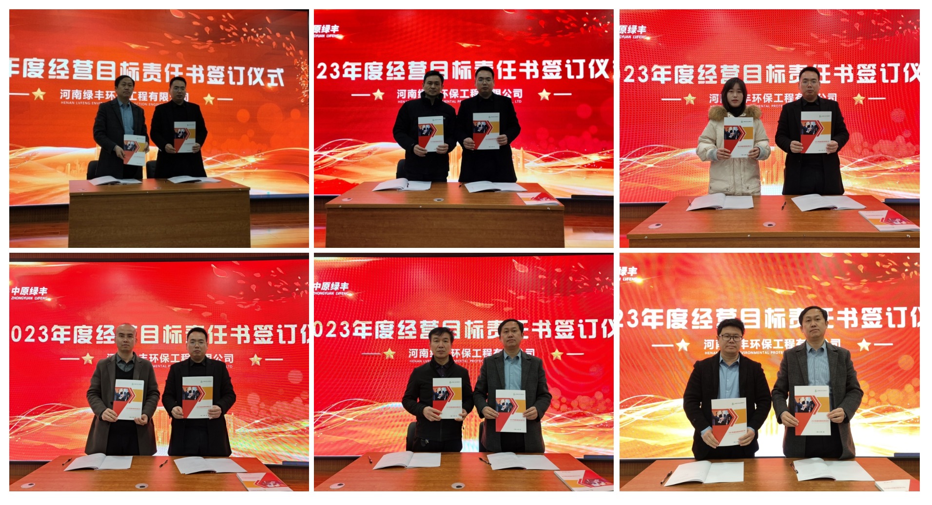 目標責任書簽訂環節,中原綠豐董事長薛水波代公司分別與中高層簽訂年度目標責任書,并與各銷售區域負責人簽訂年度目標對賭協議。有了明確的目標,立了“軍令狀”,2023年全體綠豐人一起朝著既定目標,擼起袖子加油干,新征程上努力再建新功。